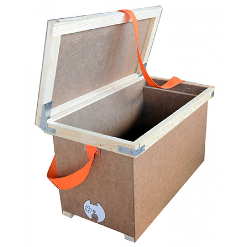 Wykonane są z twardej płyty pilśniowej na ramie sosnowej drewnianej. Wyposażona w pas transportowy. Na dole skrzynki znajduje się okrągły otwór wylotowy zamykany zasuwką metalową 4-funkcyjną. Może służyć jako ul odkładowy, do tworzenia pakietów pszczelich, do łapania rojów, do transportu ramek.